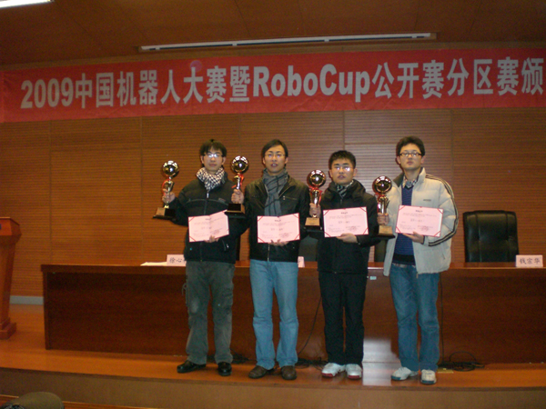 2009中国机器人大赛暨RoboCup中国公开赛于2009年12月16日至17日在哈尔滨工程大学隆重举行。由学院学生组成的E龙队在此次比赛中参加了FIRA小型组3︰3、5︰5、11︰11以及今年新增的标准动作共四个项目比赛,包揽了FIRA小型组的这四项冠军,再次奠定了在该项目上的领先地位。