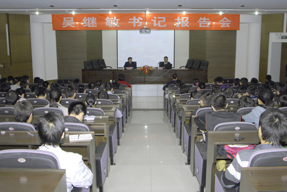 10月15日,在学校第四届“校园廉洁文化活动月”顺利开展之际,应机电工程学院党委之邀,校区党委书记吴继敏教授应邀为学院全体学生党员作了廉洁文化的专题报告。吴书记从廉洁文化的含义、开展廉洁文化教育的意义、廉洁文化与促进青年学生成长等方面,对廉洁文化作了深入浅出的解读,使全体党员经受了一次精神的洗礼。报告中,吴书记还向学生党员通报了学校和校区近期的主要工作。
