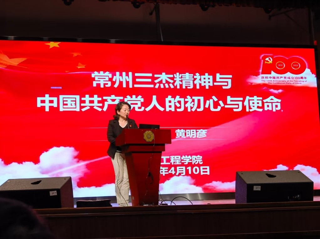 4月10日,机电工程学院党委举行党史学习教育,邀请常州三杰纪念馆馆长黄明彦研究馆员为师生做主题为 “常州三杰精神与中国共产党的初心与使命”讲座,600余名师生参加了讲座。