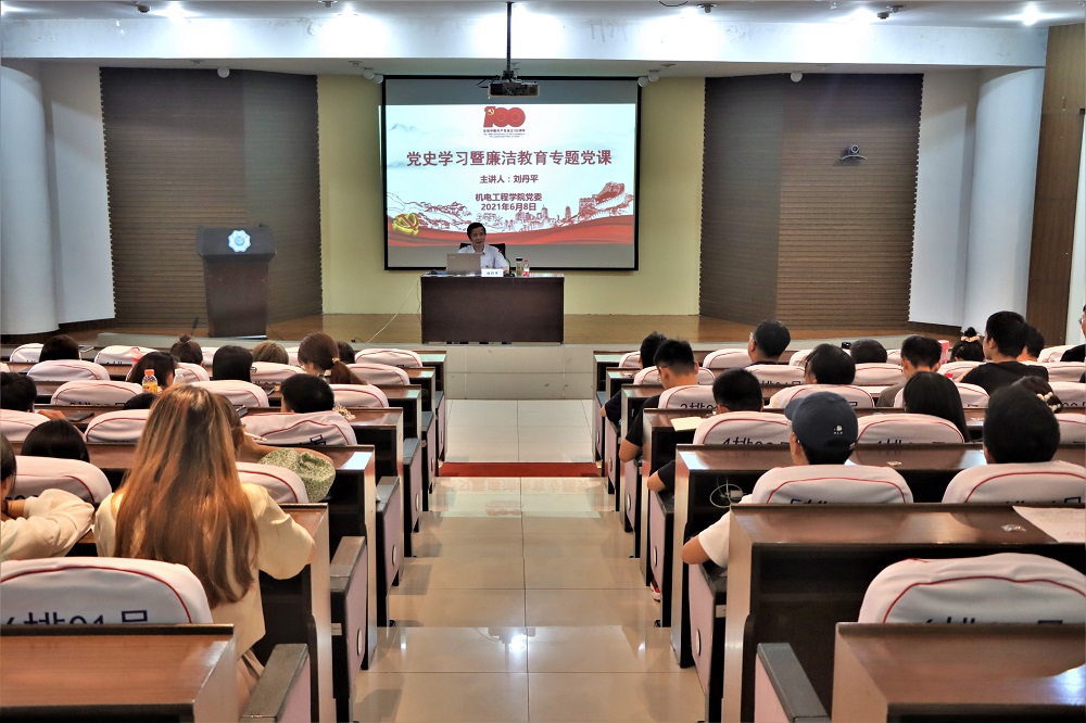 6月8日,机电工程学院举行2021届毕业生党员重温入党誓词暨廉洁教育专题活动,学院党委刘丹平书记为2021届毕业班党员们讲授了《回望百年党史 砥砺奋进前行》专题党课。