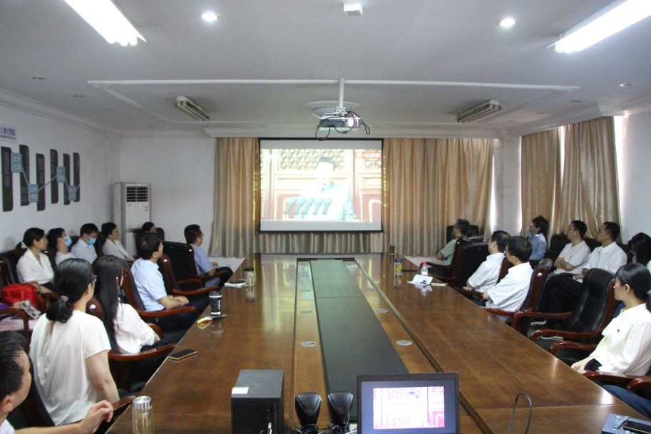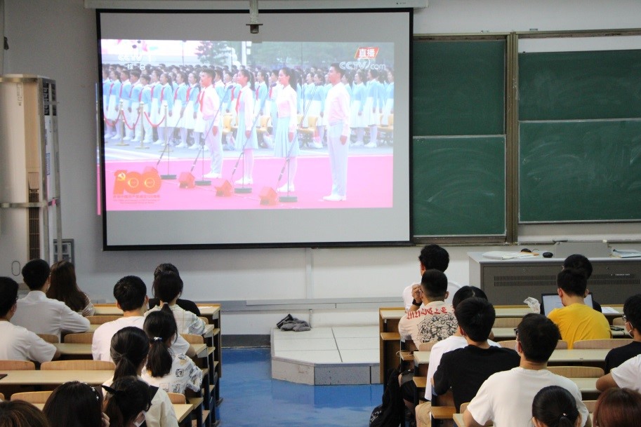 随后,学院组织教师党员、学生党员、学生骨干与青年团员集中观看庆祝中国共产党成立100周年大会直播,认真聆听习近平总书记重要讲话,共庆建党一百周年。
