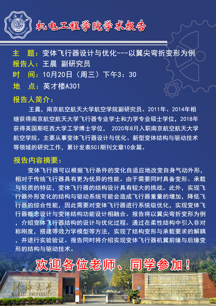 学术报告:变体飞行器设计与优化---以翼尖弯折变形为例