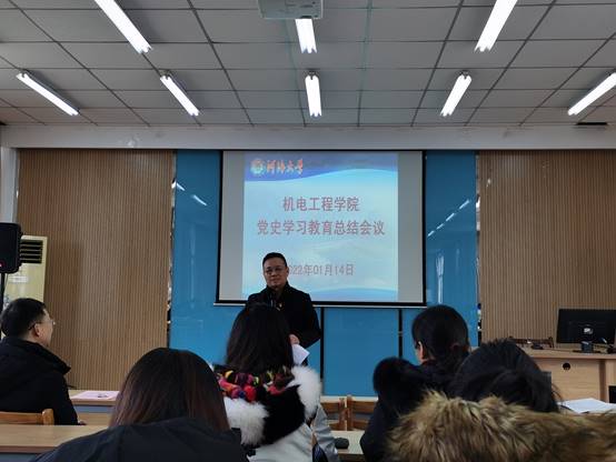1月14日,学院召开党史学习教育总结会议。开云电竞网党史学习教育第八巡回指导组组长潘洪林出席会议并作指导讲话,学院党史学习教育领导小组组长、党委书记刘丹平作学院党史学习教育总结报告,院长丁坤主持会议,全体教师、学生党员代表参加会议。