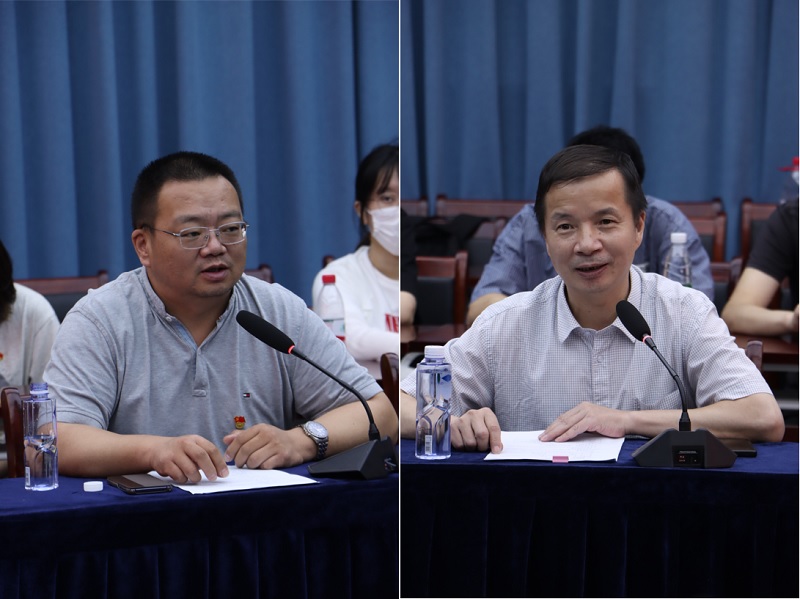 在座谈会上,基建处处长渠燕军对机电院师生一行来访表示热烈欢迎,渠处长简要介绍了此次党日活动的目的,并表示对此次党建交流活动的圆满成功充满期待。随后,基建处副处长、办学空间拓展办公室副主任武晓楠就金坛新校区建设背景、项目概况、校园规划设计、工程建设进展等四个方面向与会人员进行了详细介绍。刘丹平书记在讲话中对基建处的热情接待表示感谢,同时表达了对新校区建设中的学院楼宇、教工住宅建设的关注和对党建交流活动创新的期待。