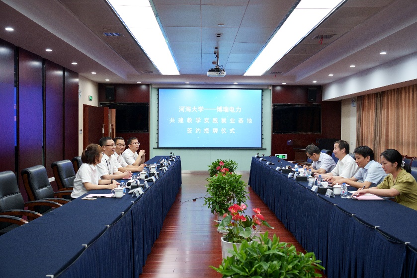签约仪式上,刘海彬总经理表示与我院开展教学、科研、实践等方面合作是深化校企融合、产教结合的创新举措,具有十分重要的意义。李钊经理则系统介绍了常州博瑞电力自动化设备有限公司的企业规模、发展历程、业务范围、人才需求等,同时着重谈了河海校友在企业的组成及发展情况,并对母校学子的成长给予殷切关注。