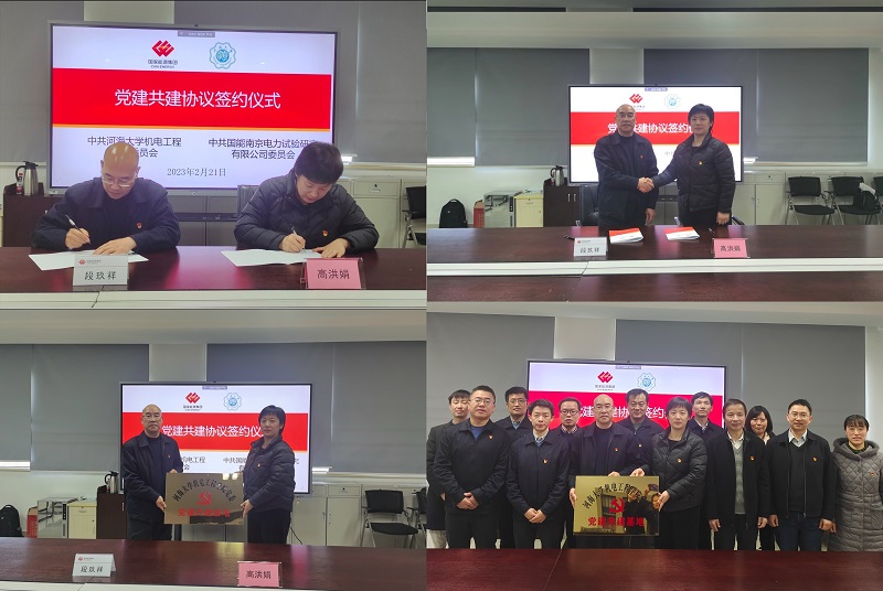 为深入学习习近平新时代中国特色社会主义思想,贯彻落实党的二十大精神、习近平总书记关于党的建设重要论述,努力形成“组织共建、队伍共抓、资源共享、发展共谋”的党建工作新格局,推动高校基层党组织与企业基层党组织双向赋能,互融互促,实现高质量党建引领高质量发展。2月21日,学院党委与国能南京电力试验研究有限公司(以下简称“电研公司”)党委举行党建共建签约仪式。电研公司党委书记段玖祥、副总经理万晖、纪委书记王文飞、副总经理张强,学院原党委书记刘丹平、党委书记高洪娟、院长丁坤,双方单位相关人员等参加活动。