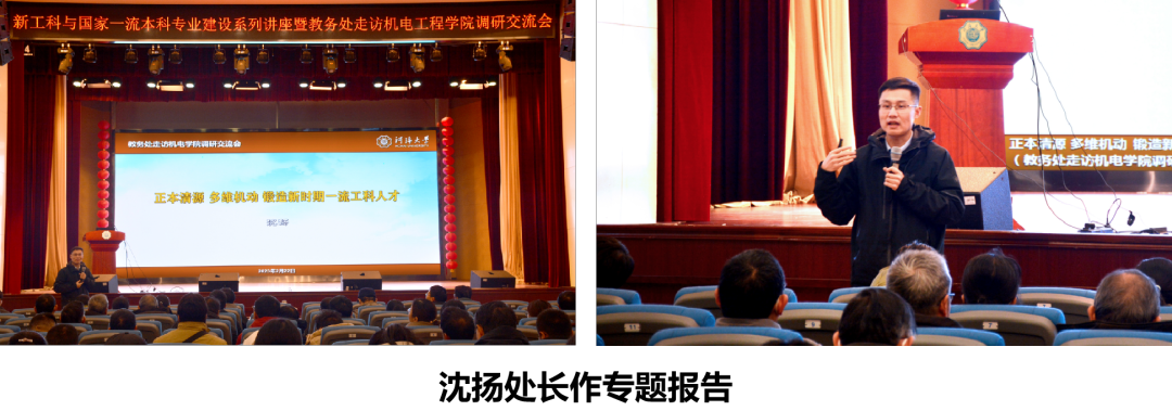 2月22日,校教务处来我院开展调研交流活动。教务处处长沈扬、副处长朱金秀,机电工程学院党委书记高洪娟、院长丁坤、副院长白建波、苑明海出席活动,机电工程学院全体教师及教务处各科室代表参加活动。活动特别邀请南京理工大学机械工程学院祖莉教授作课程建设案例分享。活动由机电工程学院副院长苑明海主持。