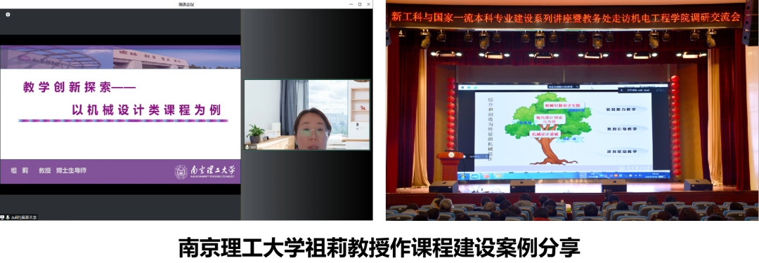 优秀课程建设案例分享环节,教育部课程思政教学名师、全国高校教师教学创新大赛二等奖获得者南京理工大学祖莉教授作《教学创新探索-以机械设计基础课程为例》经验分享。她以《机械设计基础》等三门课程为例,针对不同课程特点,介绍了项目驱动教学、案例引导教学、实践助力教学三种教学方法,分享了新构教学内容、创设教学资源、创新教学方法三种课程创新思路,展示了综合和创造为特征的机械设计课程体系。鼓励教师们坚持对教育动心、对教学动脑、对课程动手,为机电类专业教师打造一流课程及参加教学创新竞赛提供了良好有效的经验示范。