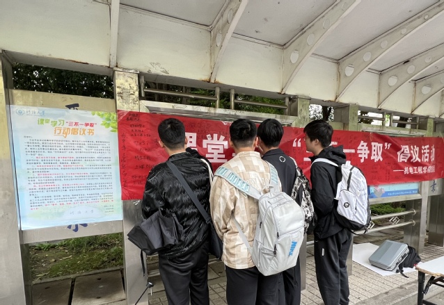 此次“三不一争取”倡议活动,旨在呼吁同学们端正自主学习态度,参与课堂不缺席;培养良好课堂学习习惯,尊重课堂不迟到、早退;提升自我控制力和执行力,专注课堂不做其他事情;保证听课效率最大化,争取课上内容课上消化。希望“水之子”们攻坚克难,精心学习,勉励奋进,共同营造“学在河海”的良好氛围。