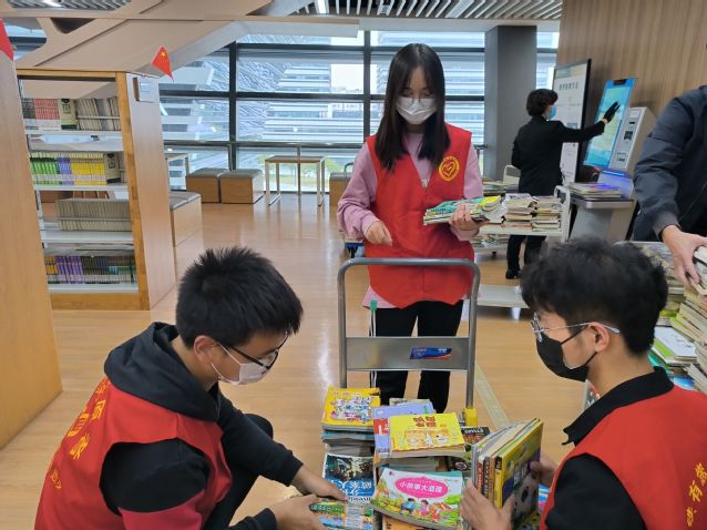 在图书馆每周六的志愿活动中,志愿者服务部与各班团支书对接,完成统筹部署、排班安排、对接负责人等工作。在志愿活动开展期间,志愿者们主要负责协助读者操作自助借还机、整理归还图书并将书上架,引导借阅者找到图书,维护现场秩序等工作,为来到常州市图书馆的市民和游客带来便利,传递了“奉献、友爱、互助、进步”的志愿者精神。