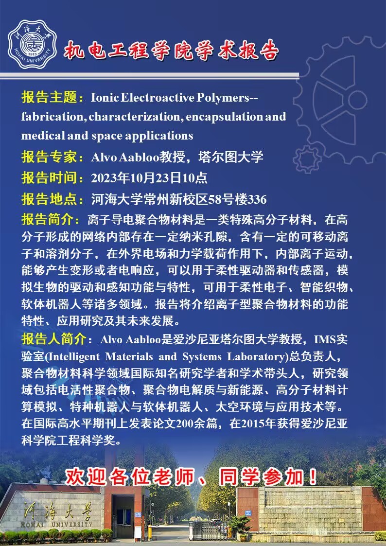 【机电大讲堂】IonicElectroactive Polymers--fabrication,characterization, encapsulation andmedicaland space applications