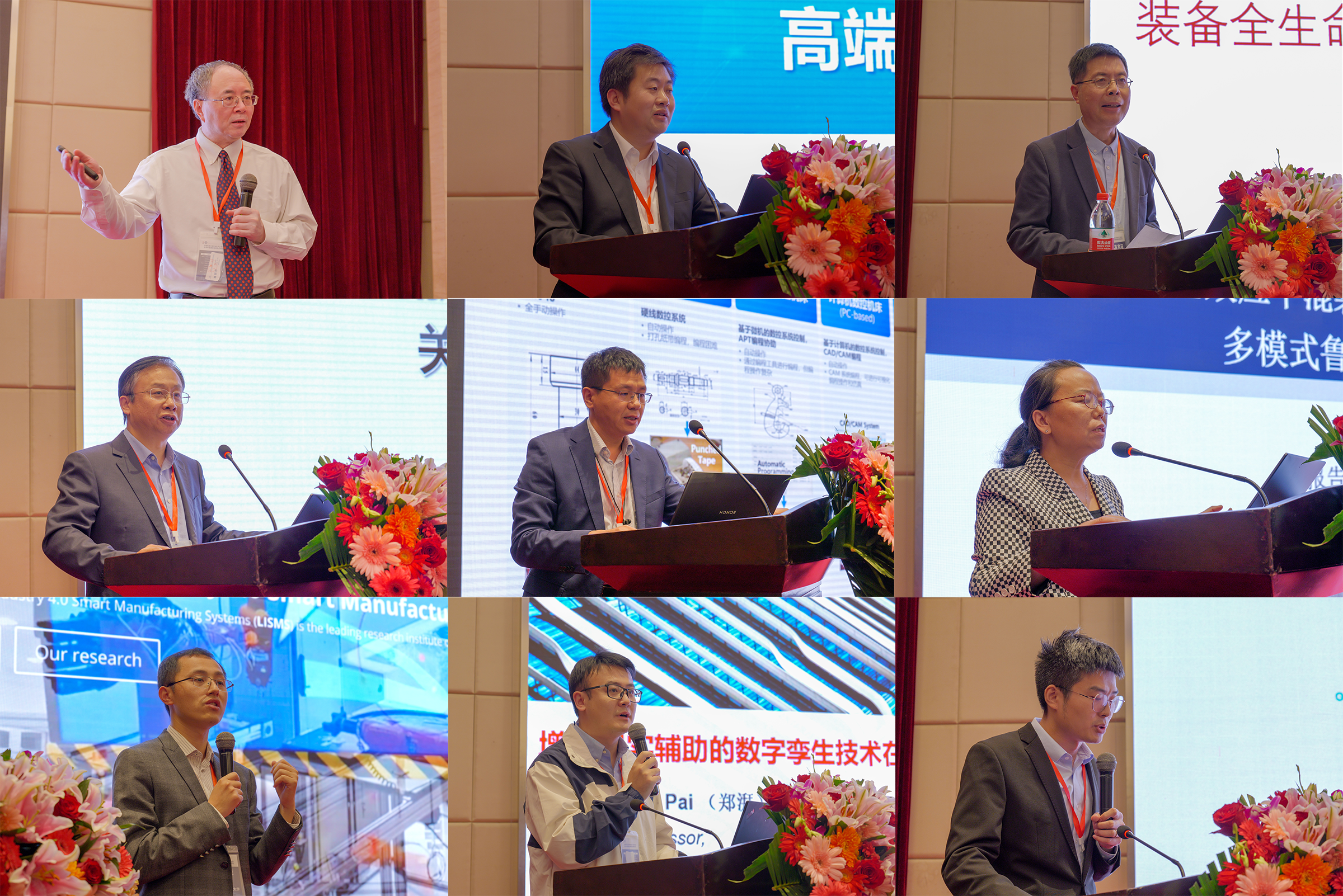 清华大学李京山教授,北京理工大学刘检华教授,西安交通大学张超副研究员代表周光辉教授团队,南京航空航天大学郭宇教授,上海理工大学李卫东教授,山东大学胡天亮教授,新西兰奥克兰大学陆玉前副教授,武汉科技大学唐秋华教授,香港理工大学助理教授郑湃,东华大学汪俊亮副研究员先后以“智慧互联与可持续发展制造系统的机遇和挑战”、“高端装备精密装配技术”、“认知数字孪生驱动的车间智能制造技术及应用”、“复杂离散制造系统数字孪生关键技术研究”、“装备全生命周期智能监控系统研究”、“数字孪生机床-从概念到实践”、“自组织制造网络理论及实践”、“劣化效应下混装生产与维护同步作业的多模式鲁棒调度理论与方法”、“增强现实辅助的数字孪生技术在人本智造领域的探索”、“数据与机理融合的可信视觉检测方法”为题作了精彩的报告交流。