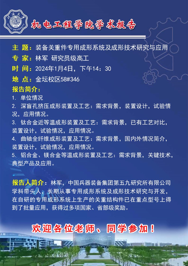 【机电大讲堂】装备关重件专用成形系统及成形技术研究与应用