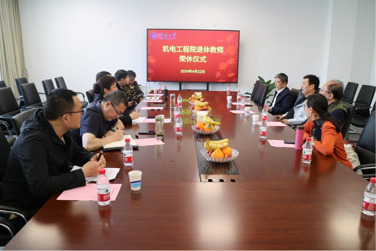 4月22日,机电工程学院举行2023年退休教师荣休仪式。退休教师胡友安、肖洪、李龙华、刘巍,学院党政领导,退休教师所在教研室主任,院办主任以及分工会代表参加了仪式,分工会副主席马可主持。