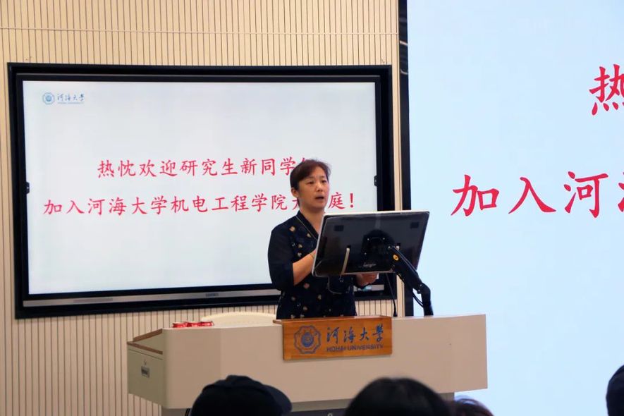 学院党委书记高洪娟老师致欢迎辞并讲授开学第一课。高书记首先欢迎大家加入温暖的河海机电大家庭,然后以《立德修身,奋发有为》为主题,分别从百年河海、红色基因、立德修身、奋发有为四个方面进行讲述。“改革风正劲,创新潮更涌”,高书记通过简短的叙述为2024级新生指明了未来前进的方向,希望同学们在科研中敢想敢做,在未来立德修身,奋发有为,与时代同步,与祖国同行,共同谱写机电工程学院高质量发展新篇章。