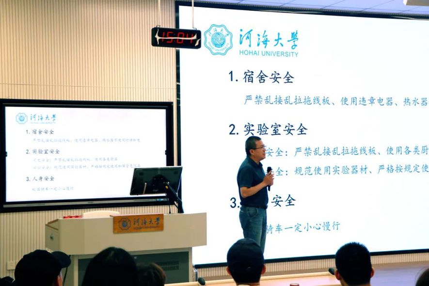 最后,学院党委副书记张亿全老师向新生介绍了研究生日常教育管理的注意事项,包括安全教育、防诈骗宣传和日常管理三个方面并就意识形态工作进行了专题宣贯,确保每位同学都能在校园中有序、安全地进行学习和研究。