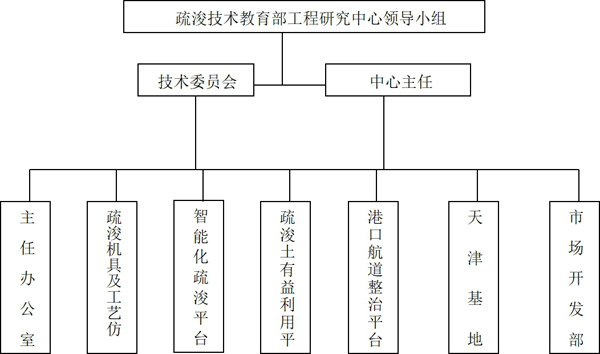 疏浚中心实行主任负责制,主任主持疏浚中心全面工作,并向学校提名推荐工程中心副主任和技术委员会成员人选。疏浚中心的技术委员会聘请了疏浚工程中心所在领域科学界、工程界和相关企业的院士、专家、企业家等共同组成了技术委员会。技术委员会作为工程中心的技术咨询机构,负责审议工程中心的发展战略、研究开发计划,评价工程设计与试验方案,提供技术经济咨询和市场信息,为中心的可持续健康快速发展,提供了重要的支撑作用。