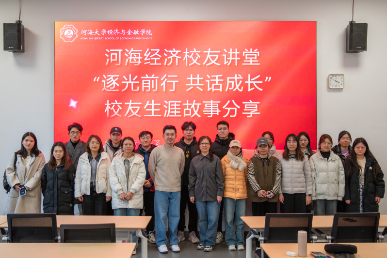 为加强与校友的沟通联系,充分发挥校友榜样引领作用,推动高质量发展,12月13日,经济与金融学院在常州校区33号楼102会议室举办河海经济第四期校友讲堂:“逐光前行 共话成长”校友生涯故事分享会。经济与金融学院办公室主任左丽、经济与金融学院团委书记亓文娟,2021级、2022级、2023级本科生、2024级研究生代表参加活动。本次活动特别邀请到学院2017届校友梁文韬进行生涯故事分享,为同学们分享其毕业后从一线销售起步,到进入世界500强企业,再到自行创业,成为微信生态短视频和直播行业的头部生涯经历。梁文韬校友是经济与金融学院2017届国际经济与贸易专业毕业生,现任锡众文化传媒有限责任公司总经理、腾讯广告特邀顾问、微信视频号亿级服务商、梁山会视频号俱乐部会长、北京大学新媒体学院特邀讲师。分享会开始前,经济与金融学院传媒中心易班工作室部长杨菲菲向同学们介绍了梁文韬校友的基本情况,并对校友的到来表示热烈的欢迎。梁文韬校友结合自身的经历,带领同学们回顾了他在求职过程中的关键节点。他坦言,起初在一线销售岗位时,面对压力与挑战,他凭借坚定的信念和不断提高的自身能力,逐步站稳脚跟。进入世界500强