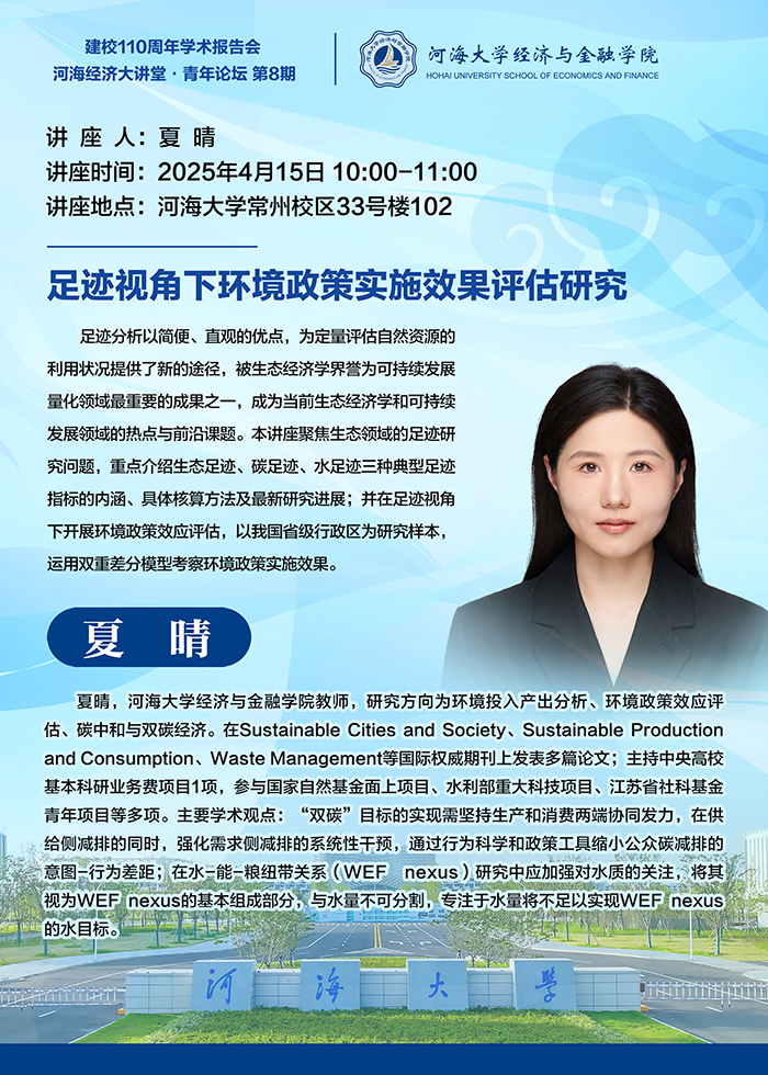 4月1日,学院邀请贾册老师为广大师生做了题目为“Do Industrial Plants Actively Respond to Short-Term Regulations? Evidence from Chinas Air Quality Alerts System”的学术讲座。主持人丁童慧老师向全体参与人员介绍了贾册博士的研究方向及此次讲座的主要内容。贾册博士通过系统解析中国重污染应急预警制度的运行机制,揭示了工业企业污染减排决策的深层动因。其研究创新性采用自然实验法发现:高强度执法下的高级别预警能显著激发企业减排响应,但预警频次与级别的动态调整易诱发企业“警报疲劳”,形成边际效应递减现象。基于实证数据,贾册博士指出环境监管强度是实现政策效力的关键变量,提出构建预警级别-执法力度动态适配模型的创新思路,为破解运动式治理困境、推进大气污染精准防治提供了新的理论框架。在互动环节,师生们就环境预警阈值设定、政企博弈模型构建等学术前沿问题,与贾册博士展开了深度对话。贾册,经济学博士,开云电竞网经济与金融学院教师。中国人民大学人口、资源与环境经济学博士(CSC公派美国康奈尔大学戴森应用经济与