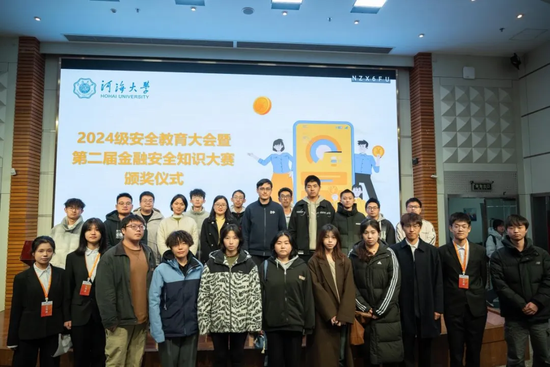 为进一步做好2024级新生入学教育,强化学生金融安全意识,提高学生防范诈骗能力,学院联合机电工程学院、信息科学与工程学院共同开展了2024级新生安全教育活动。12月5日,2024级安全教育大会暨第二届金融安全知识大赛颁奖仪式在江宁校区会议中心召开。东方财富股份有限公司高校负责人尹东东受邀出席活动,学院团委书记亓文娟、机电工程学院2024级本科生辅导员李琛、信息科学与工程学院2024级本科生辅导员边钰出席活动,三个学院2024级学生代表参加活动。东方财富股份有限公司高校负责人尹东东受邀给2024级同学分享了金融安全知识,并以金融行业为为同学们做了一场风趣详实的生涯规划讲座。尹经理通过金融行业概述、子行业介绍、职业生涯规划三个板块为同学们科普了金融行业相关知识,并通过金融安全相关知识的解读来帮助同学们提高金融安全素养,增强防范意识。金融安全知识大赛是通过专用平台以答题形式参与比拼,内容涵盖金融反诈知识、金融基础知识、金融安全教育、消费者权益保护、金融时政热点等多个方面。活动自9月启动以来,吸引了学校700余名学生参加,同学们积极在答题平台上学习金融知识,正确看待经济形势,金融素养和投资实践