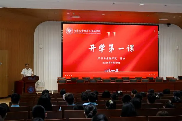 金秋9月,经济与金融学院迎来了2024级157名本科新生和95名研究生新生力量。为指导和帮助新生开好头、起好步,深入践行“时代新人铸魂工程”,激发奋进力量,学院精心策划并组织开展了一系列主题丰富、形式多样的新生入学教育活动,全方位助力新生开启河海 “经”彩新征程。坚定信念,理想扬帆启航新时代学院党委陈杰书记面向全体新生讲授开学第一课。他从坚定理想信念、树立大局意识、做好生涯规划、敢于担当作为四方面出发,勉励同学们要牢记一代又一代河海人在新征程上为水利建设做出的奉献和努力,身处青春年华勇敢追逐梦想,在实践中锻炼自我,写好时代青春答卷。学院团委书记亓文娟老师以“大学生的党员之路”为题,向新生们详细介绍了学院学生党建基本情况、党员的基本素养和要求、党员发展流程等,鼓励同学们积极向党组织靠拢,坚定不移听党话、跟党走,研究生党员要积极发挥先锋模范作用,肩负起党员的责任与担当。各党支部开展“强基铸魂,党建领航”党员联系本科新生活动,组织新生入党申请书集体递交仪式。通过强基计划、“零号舍友·领航导师”铸魂计划,高年级党员走进新生班级团支部、新生宿舍,为新生“办实事、解难题”,引导新生立志做有理想、敢