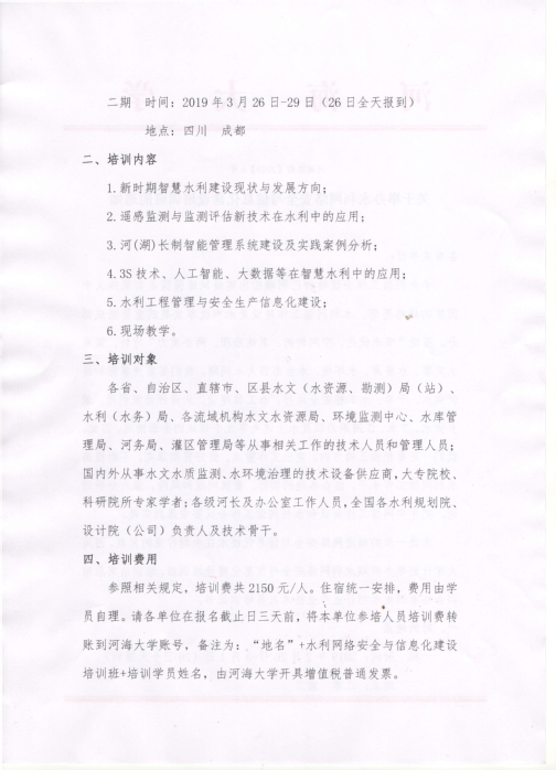 关于举办水利网络安全与信息化建设培训班的通知