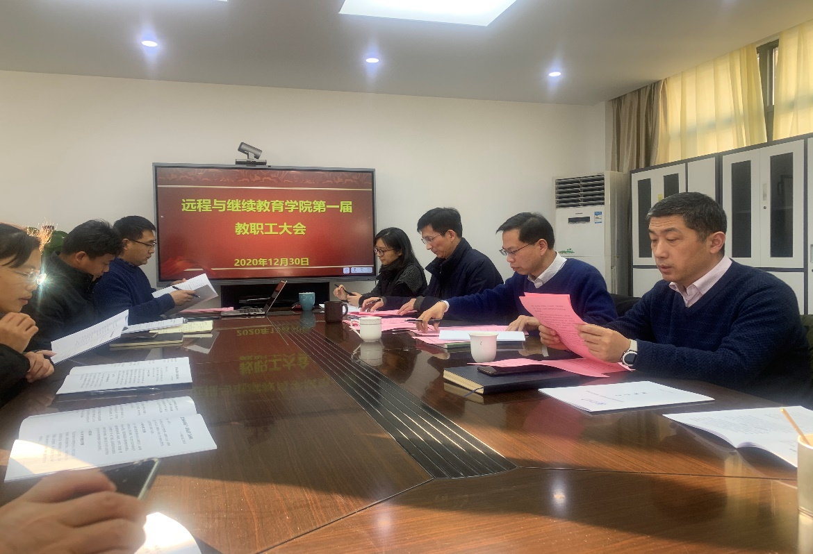 2020年12月30日,开云电竞网远程与继续教育学院召开第一届教职工大会。大会在嘹亮的《国歌》声中开幕。学院全体教职工参加了会议。