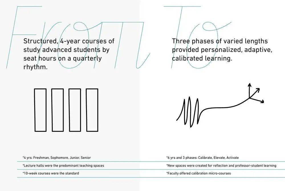自定节奏教育(Paced Education)打破传统四年制结构化教育模式,实行调整(Calibrate)、提升(Elevate)和启动(Activate)三阶段式方法。促进学术探索,提升学科的内在严谨性。