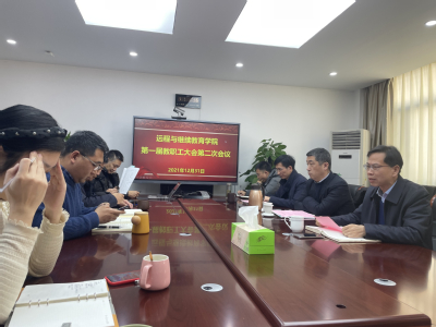 2021年12月31日上午,远程与继续教育学院召开第一届教职工大会第二次会议。会议由远教院直属党支部书记叶鸿蔚主持。