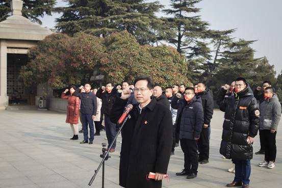 在庄严肃穆的淮海战役纪念塔前,叶鸿蔚书记和铭仕教育站点朱司涛校长一起代表师生向烈士敬献了花篮。叶书记带领在场师生党员们瞻仰了革命烈士,重温了入党誓词。全体师生向烈士纪念塔三鞠躬,表达对在淮海战役中牺牲先烈的哀思和敬意。