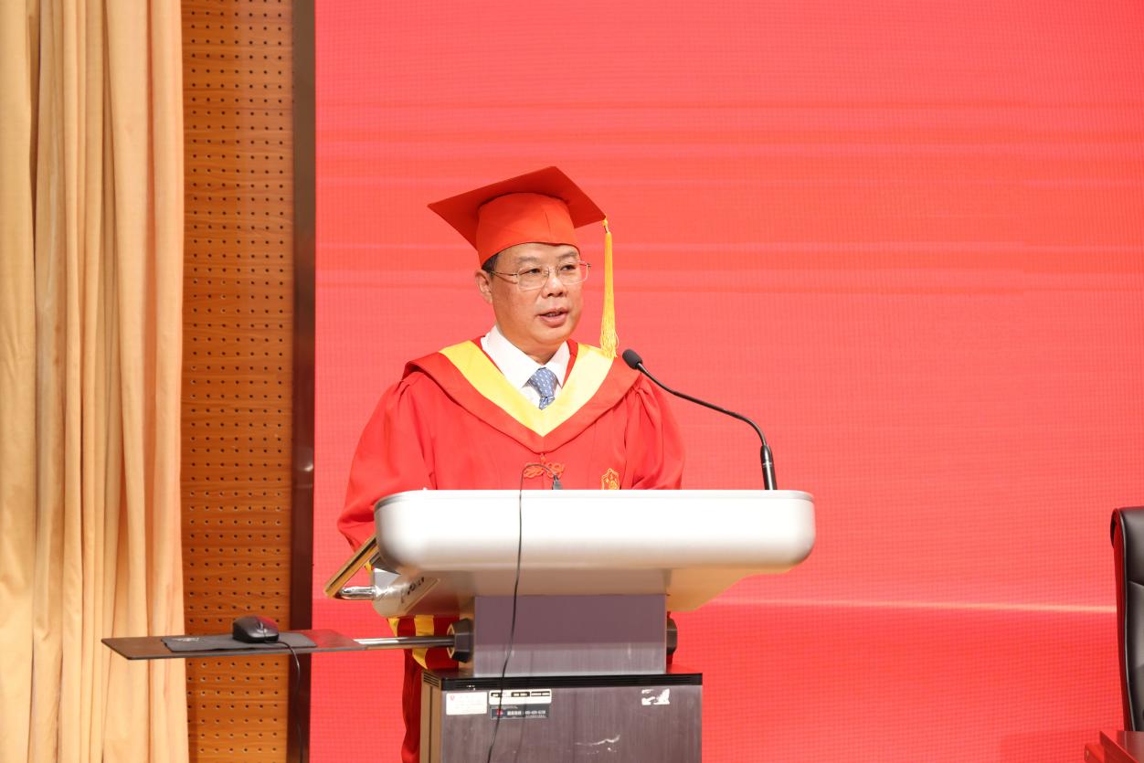 毕业典礼上,徐辉校长发表了《乘风破浪 砥砺前行》的讲话,他向不断激发学习热情,积极战胜疫情、顺利完成学业的7153名同学表示热烈的祝贺,向付出辛勤劳动的教职员工,始终关注着同学们成长成才的亲友表示衷心的感谢,并致以崇高敬意和美好祝福!