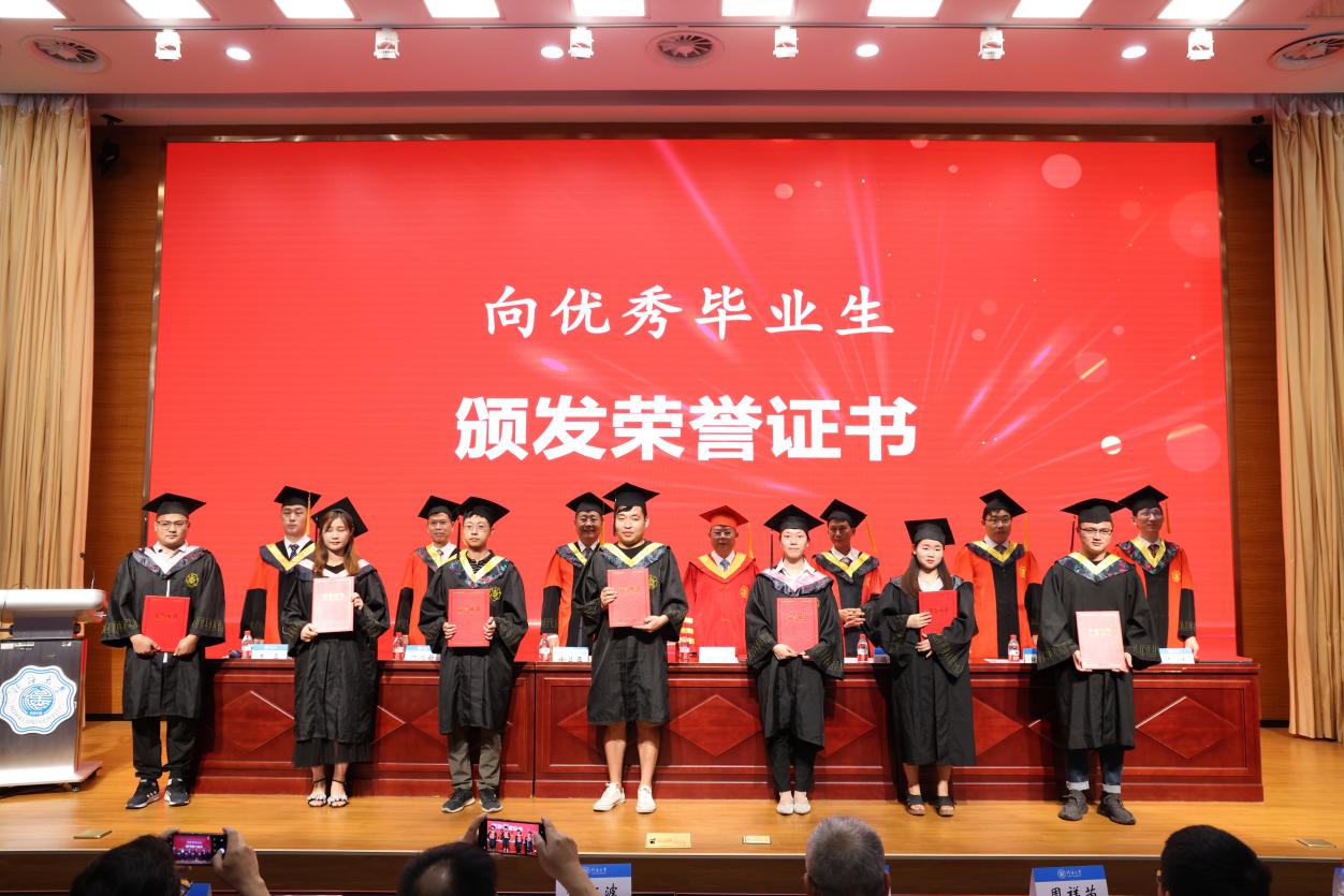 徐卫亚副校长宣读了优秀毕业生名单,与会领导和嘉宾向毕业生代表颁发毕业证书、学士学位证书,向优秀毕业生代表颁发荣誉证书。
