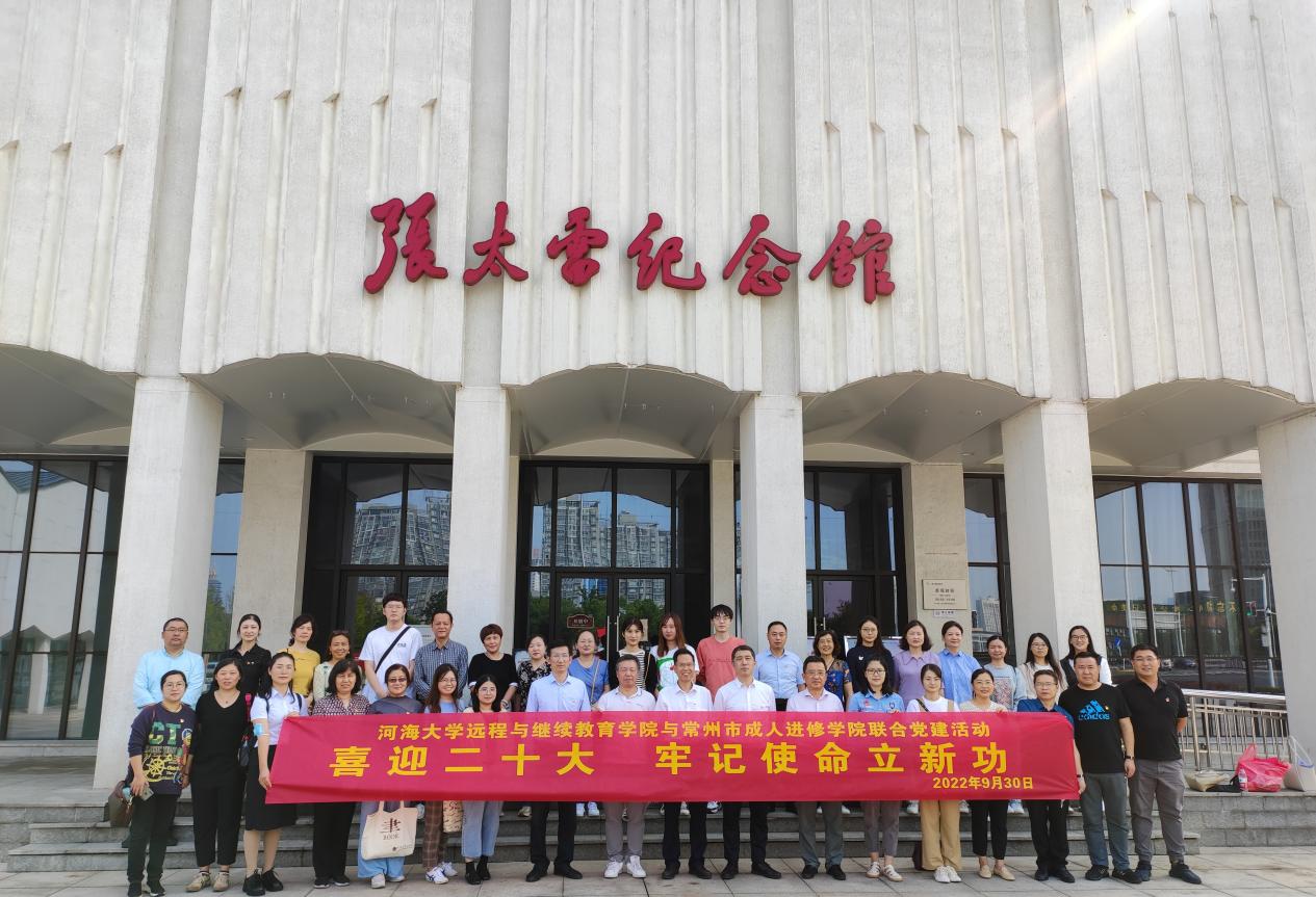 2022年9月30日,国庆前夕,开云电竞网远程与继续教育学院与常州成人进修学院开展了以“喜迎二十大,牢记使命立新功”为主题的联合党建活动。双方党支部30多名党员同志和部分同事参加了活动。