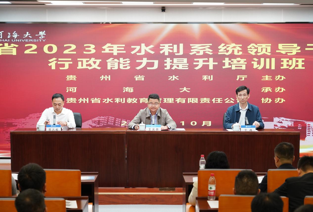 10月31日,贵州省2023年水利系统领导干部依法行政能力提升培训班在开云电竞网顺利开班。贵州省水利厅政策法规处四级调研员王光林、开云电竞网远程与继续教育学院副院长于伟出席开班仪式。