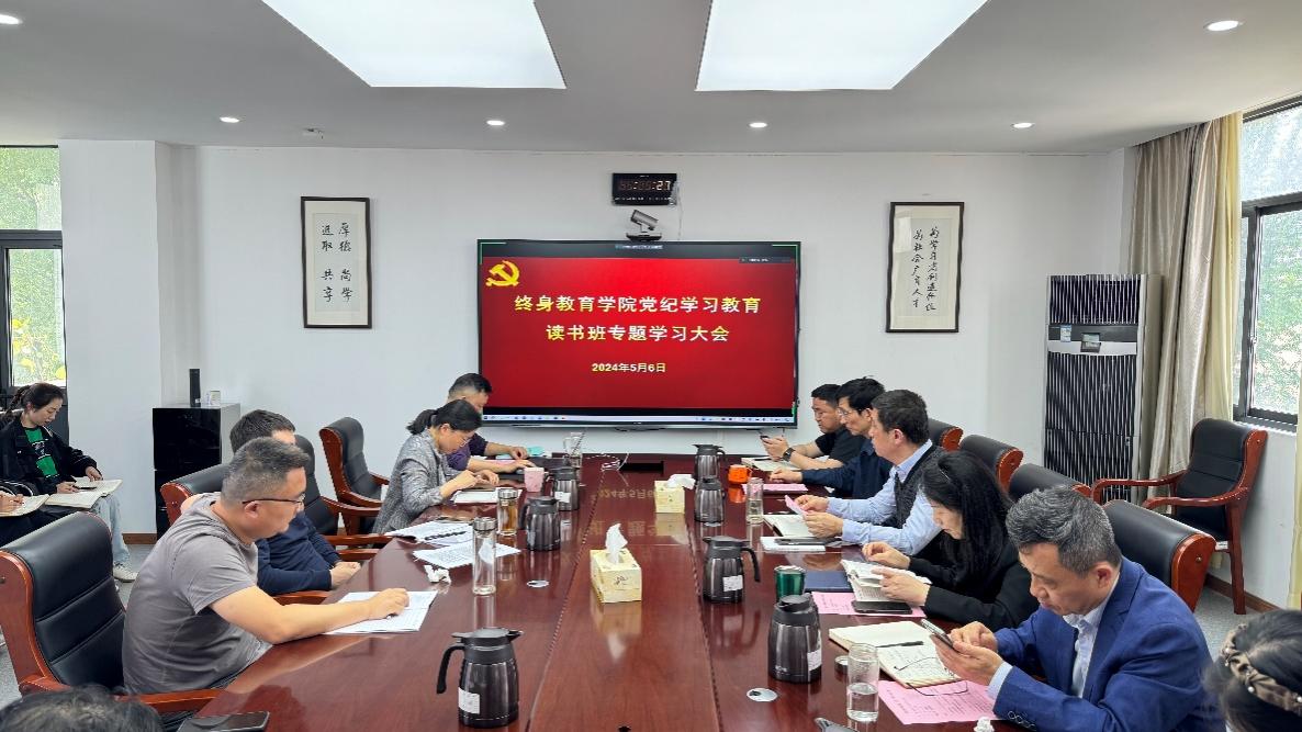 5月6日和5月8日下午,终身教育学院党总支围绕学习贯彻《中国共产党纪律处分条例》,开展党纪学习教育读书班集中研学活动,活动由学院党总支书记、院长朱亚主持,学院全体党员参加活动。