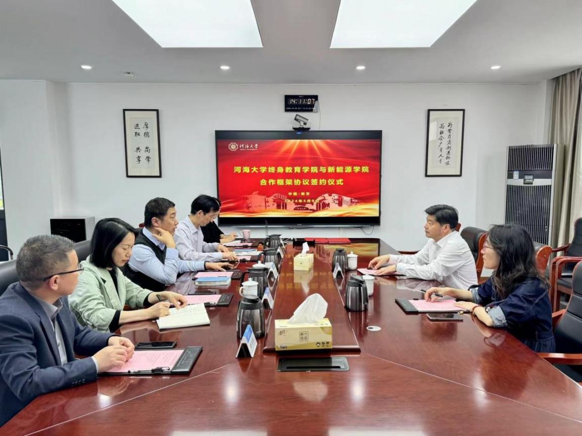 5月9日下午,终身教育学院与新能源学院举行合作框架协议签约仪式,终身教育学院党总支书记、院长朱亚、新能源学院党委书记杨春伟、终身教育学院副院长于伟、姚文贤出席签约仪式。