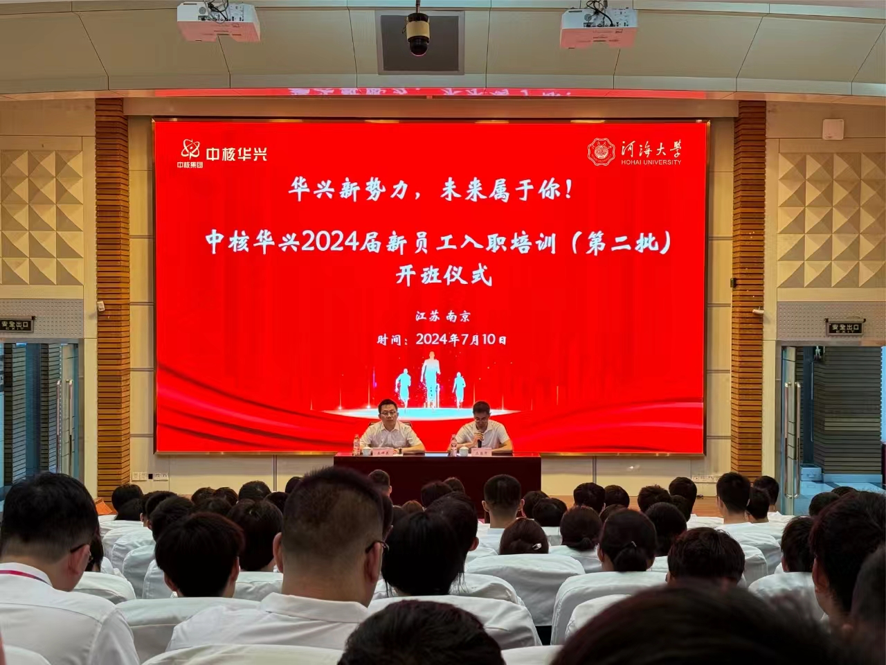7月10日,中国核工业华兴建设有限公司2024届新员工入职培训班在我校顺利开班。本次培训旨在帮助新员工了解公司战略布局和发展方向,熟悉并适应公司的基本管理,深入感受公司的文化和价值观,培养其对公司的归属感和荣誉感,尽快实现从校园人向职业人的转变。