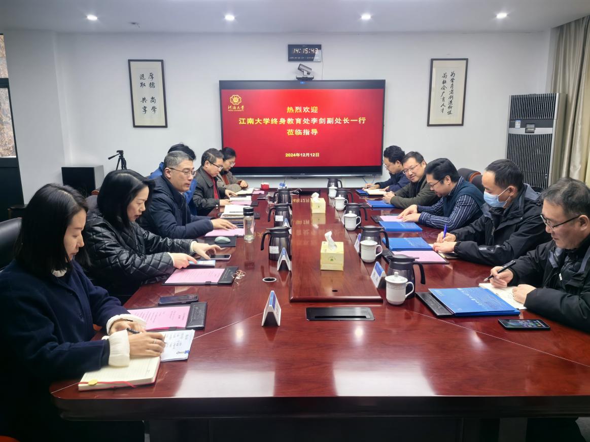 12月12日下午,江南大学终身教育处副处长李剑,继续教育学院副院长周伟、惠恭健等一行5人前来我院调研交流。学院党总支书记、院长朱亚,副院长于伟、姚文贤出席调研座谈会。