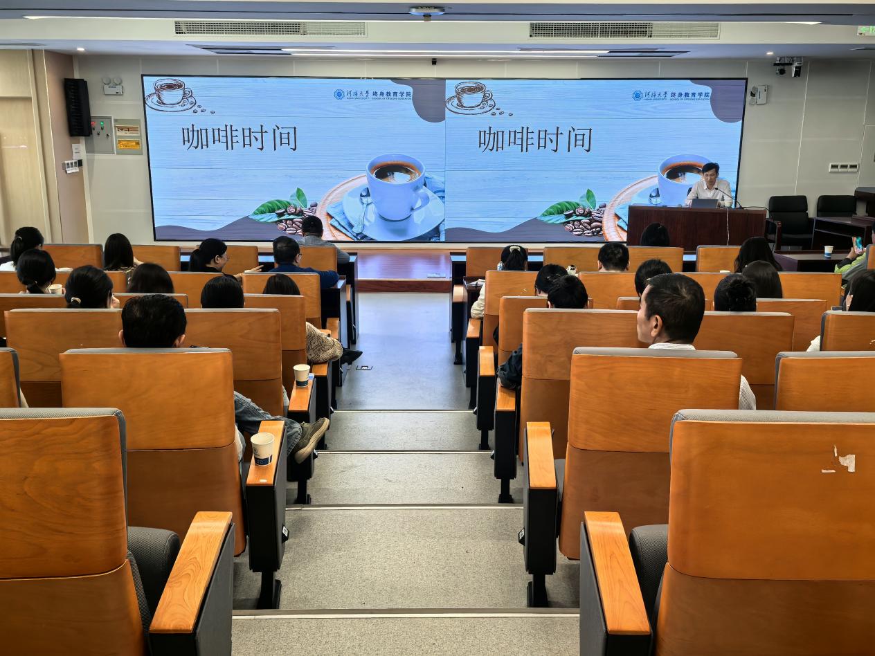 3月26日下午,终身教育学院2025年首期“咖啡时间”文化沙龙在综合楼附楼401报告厅举行。学院副院长、分工会主席于伟,副院长姚文贤与30余名教职工齐聚一堂,在氤氲的咖啡香气中,共赴美好的午后时光。活动由学院党总支组织委员仲兆宏主持。
