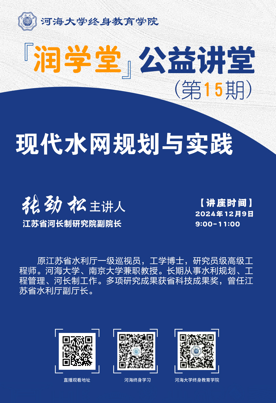 【润学堂】公益讲堂第十五期:现代水网规划与实践
