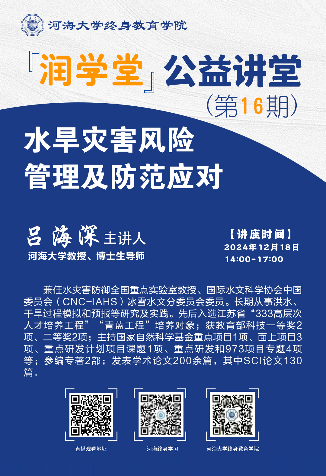 【润学堂】公益讲堂第十六期:水旱灾害风险管理及防范应对