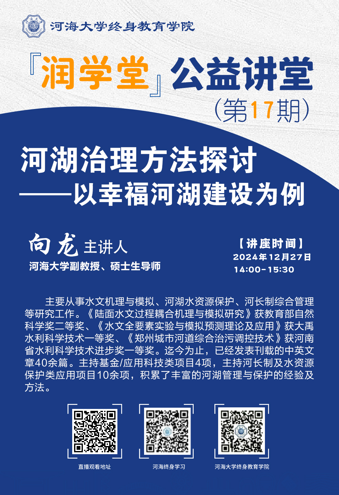 【润学堂】公益讲堂第十七期:河湖治理方法探讨—以幸福河湖建设为例