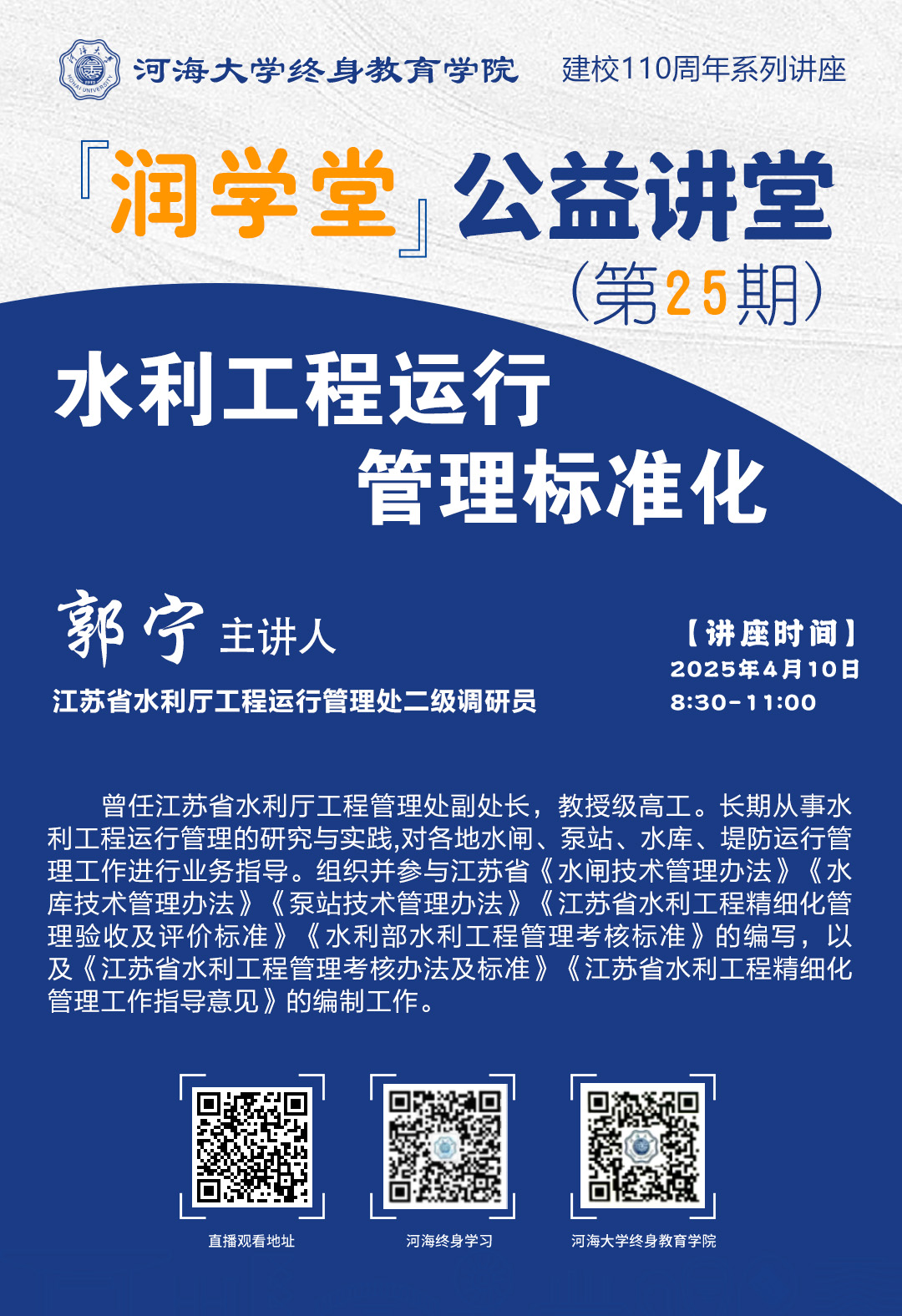 【润学堂】公益讲堂第二十五期:水利工程运行管理标准化