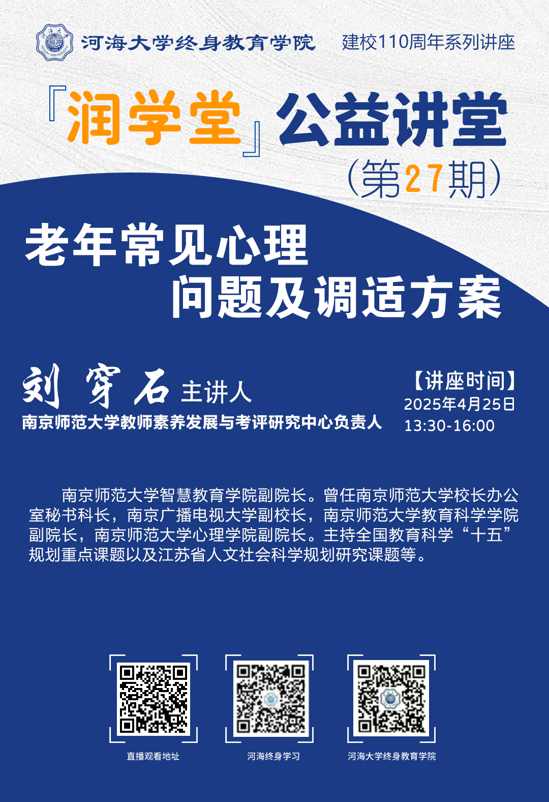 【润学堂】公益讲堂第二十七期:老年常见心理问题及调试方案