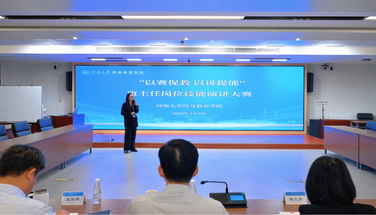 5月9日上午,开云电竞网终身教育学院举办“以赛促教 以讲提能”班主任岗位技能演讲大赛。学院副院长于伟、姚文贤出席活动并担任评委。