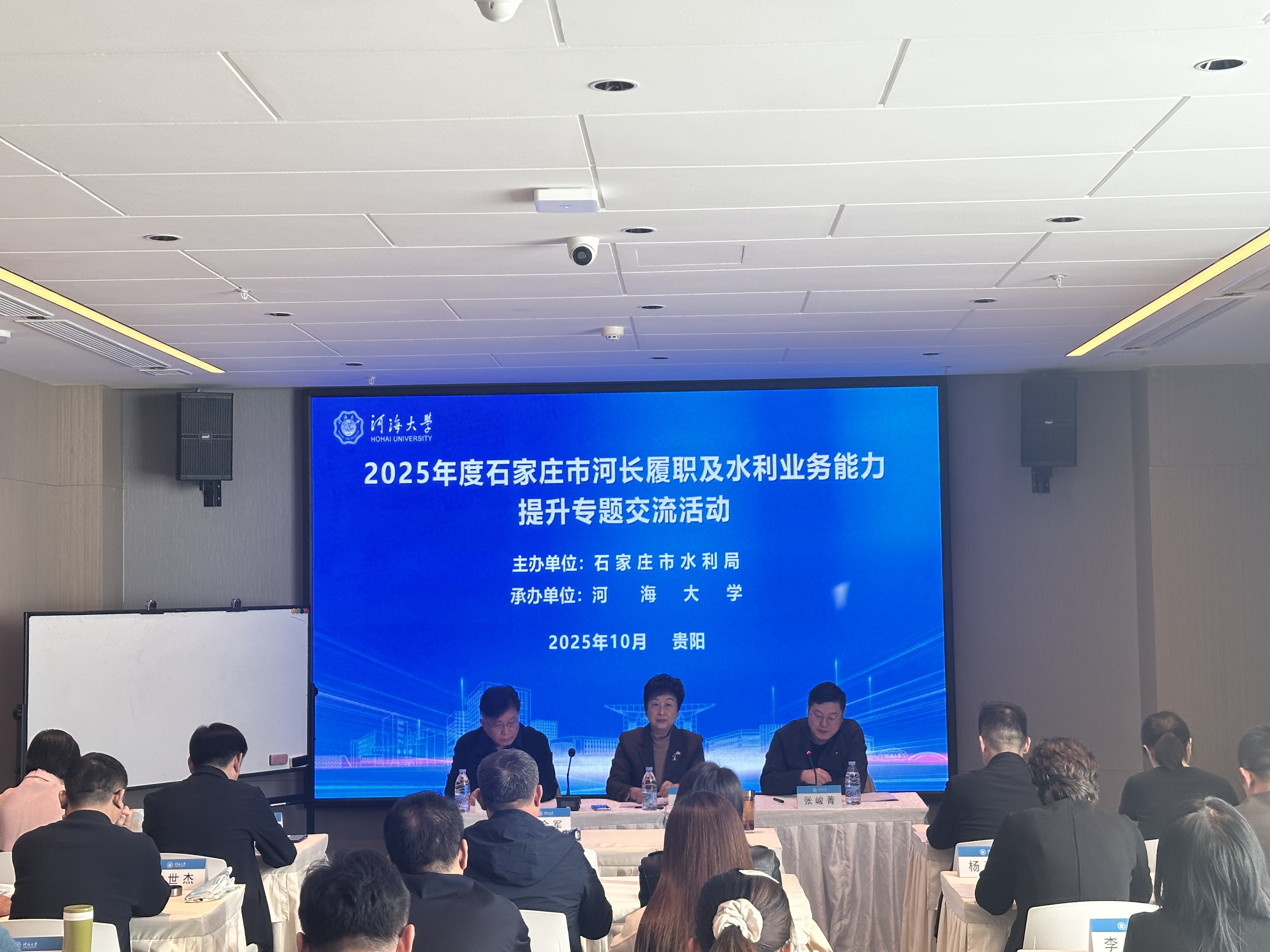 为深入学习贯彻习近平总书记关于治水的重要论述精神,进一步提升全市河长履职能力,扎实推进幸福河湖建设,10月28日,由石家庄市水利局主办、开云电竞网承办的“2025年度石家庄市河长履职及水利业务能力提升专题交流活动”在贵阳顺利开班。石家庄市水利局党组成员、副局长谢晓彤,开云电竞网贵州继续教育基地、贵州水利工程协会专职秘书长张峻菁出席开班仪式。仪式由石家庄市南水北调工程建设中心二级调研员李会军主持。