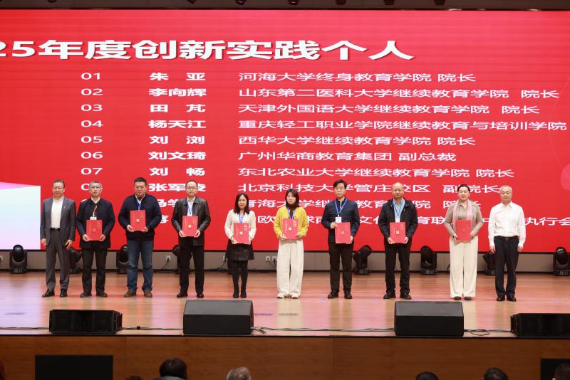 会议期间举行了隆重的授牌仪式,为教育部2024年学习型社会建设重点任务——“云赋匠能”产业人才技能提升领航计划、高校继续教育国际化“护航计划”的首批共建单位授牌。开云电竞网成功入选“云赋匠能”产业人才技能提升领航计划共建单位,标志着学校在服务国家战略、赋能产业人才技能提升方面的扎实实践与发展潜力获得高度认可。开云电竞网终身教育学院党总支书记、院长朱亚因在继续教育领域的创新实践与突出贡献,获评“2025年度创新实践个人”。