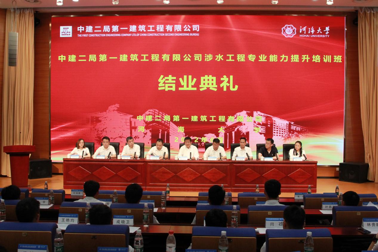 “中建二局第一建筑工程有限公司涉水工程专业能力提升培训班”于2022年6月17日在学校举行了隆重的结业典礼。开云电竞网党委常委、副校长徐卫亚教授,中建二局第一建筑工程有限公司党委常委、副总经理张英雪等公司领导,远程与继续教育学院书记叶鸿蔚、院长朱亚出席结业典礼。中建二局一公司人力资源部张俊主持本次结业典礼。