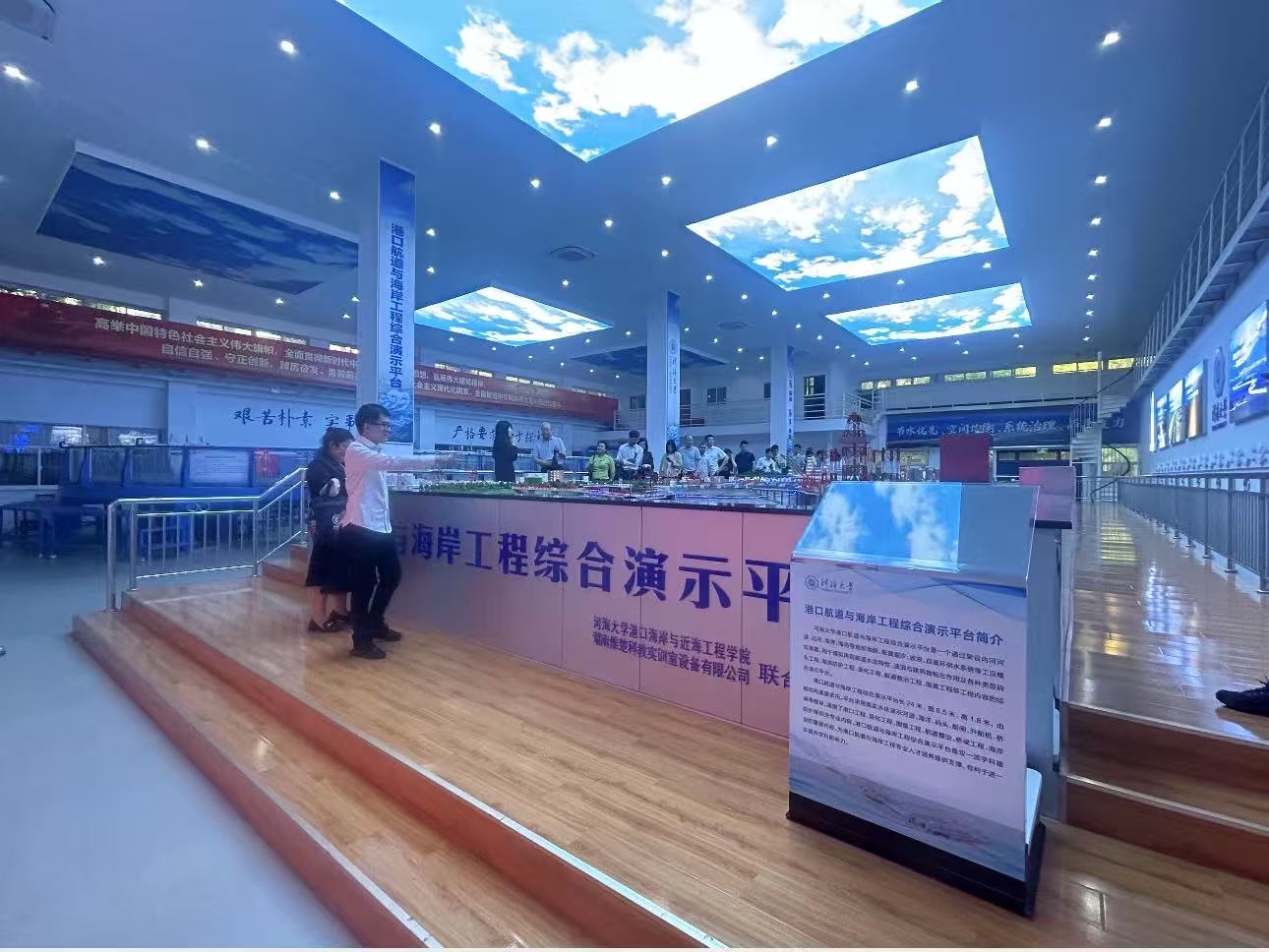 开云电竞网港口航道与海岸工程综合演示平台是一个通过架设内河河道、运河、冲击三角洲、海湾、海岛等地形地貌,配置造浪、潮汐、自循环供水系统等工况模拟装置,用于模拟再现航道水流特性、波浪与建筑物相互作用及各种类型码头工程、海岸防护工程、渠化工程、航道整治工程、围垦工程等工程内容的综合演示平台。