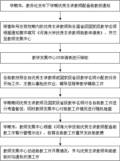 (3)教务处资助优秀主讲教师(含国家级、省级教学名师)配备助教工作流程